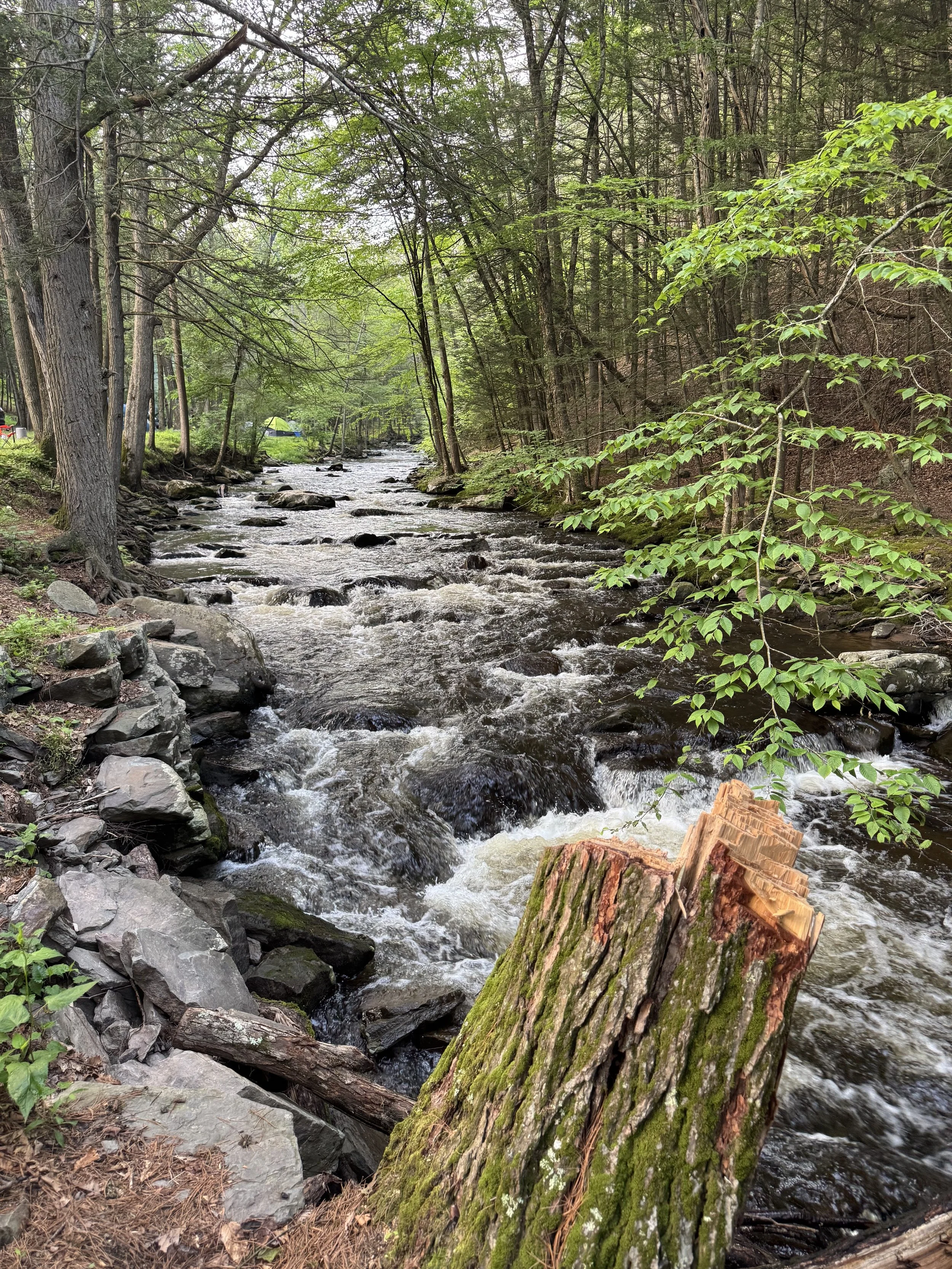 Your spot comes with everything you need. Tent, air mattress, riverfront campsite, bathrooms and showers on site. Drivers and bus riders both arrive to a fully set experience.